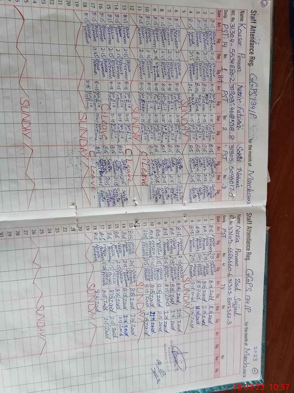 | CNIC | Full Name | Designation | R/C | Absence During Last Calender Month |
