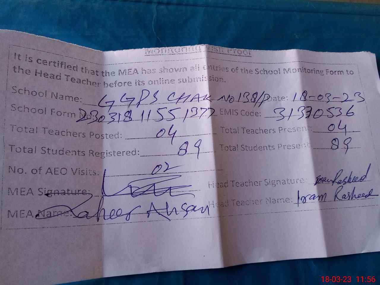 | EMIS Code: 31330536 | Name of School: GGPS 138/P | |||
