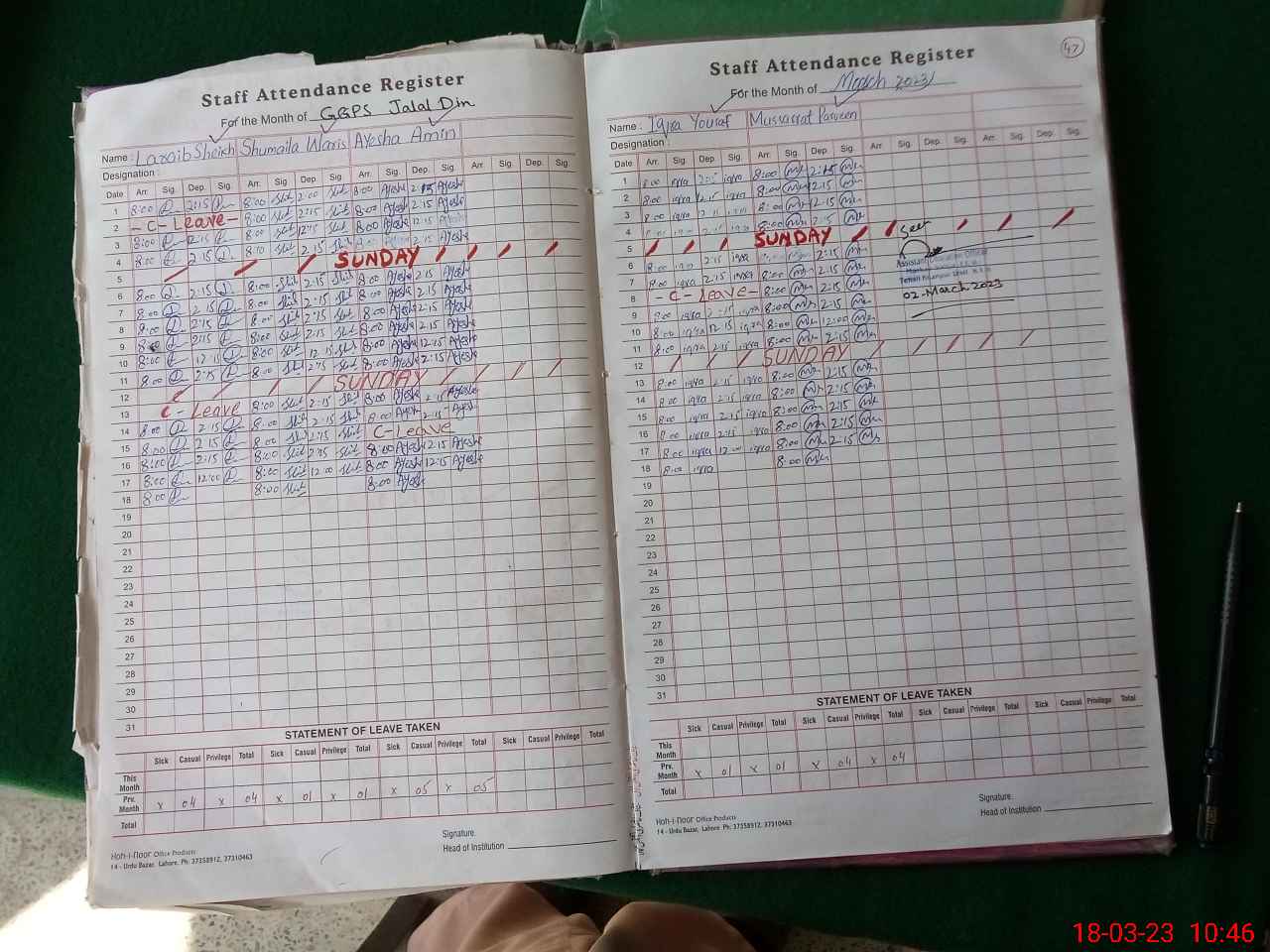 | Leave | Duty | Absent | Maternity | Medical | Ex- Pak |