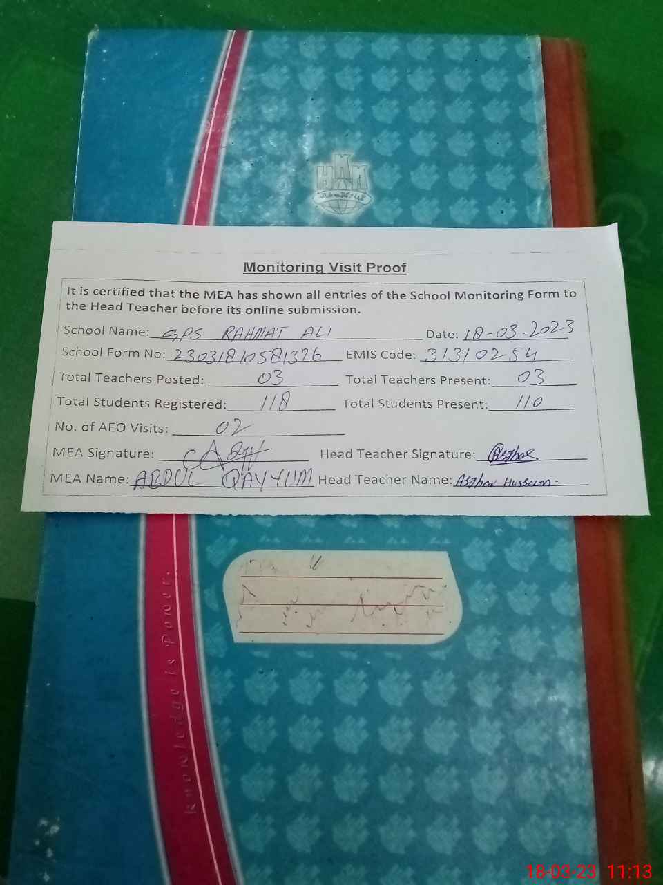 | EMIS Code: 31310254 | Name of School: GPS RAHMAT ALI | |||