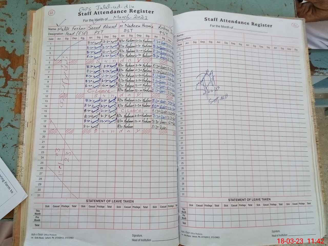 | Name: Ma**** Fa**** Designation: (School Headmaster's/Headmistress's) PST Phone/Cell Number: 03**** |