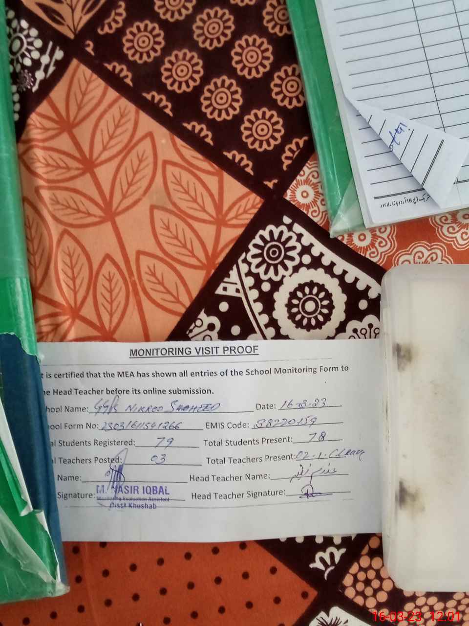 | EMIS Code: 38220159 | Name of School: GGPS NIKROO SHAHEED | |||