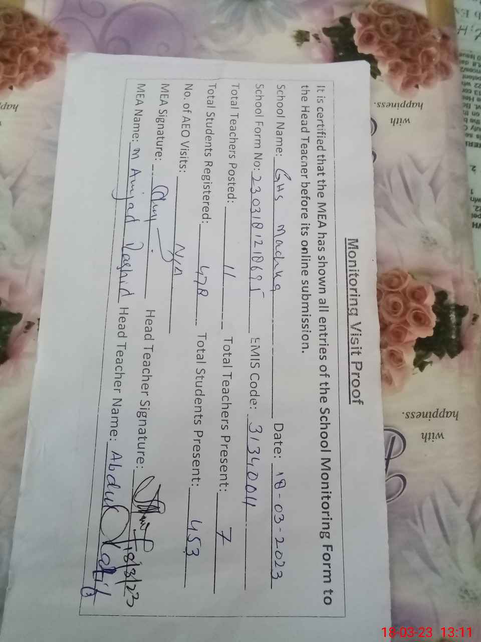 | EMIS Code: 31340011 | Name of School: GHS MACHKA | |||