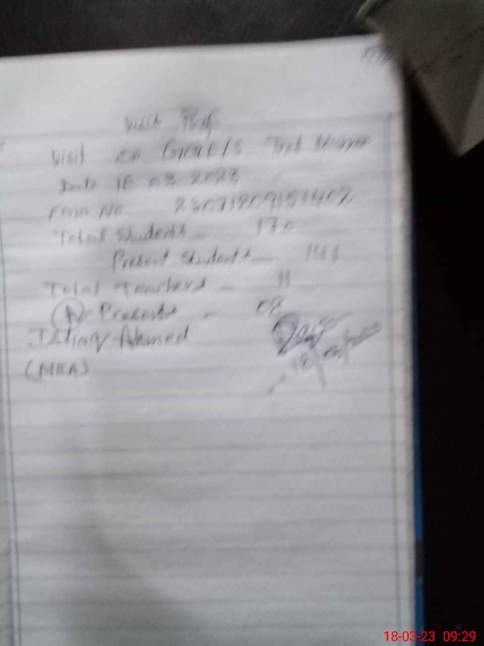 | Attendance Register | Head Teacher | MEA with School | Visit Proof |