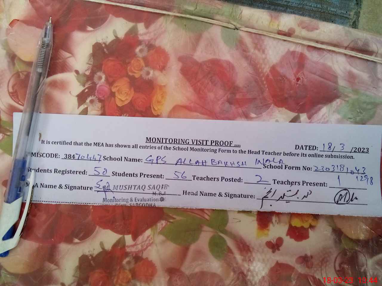 | EMIS Code: 38470447 | Name of School: GPS ALLAH BAKHSH WALA | |||