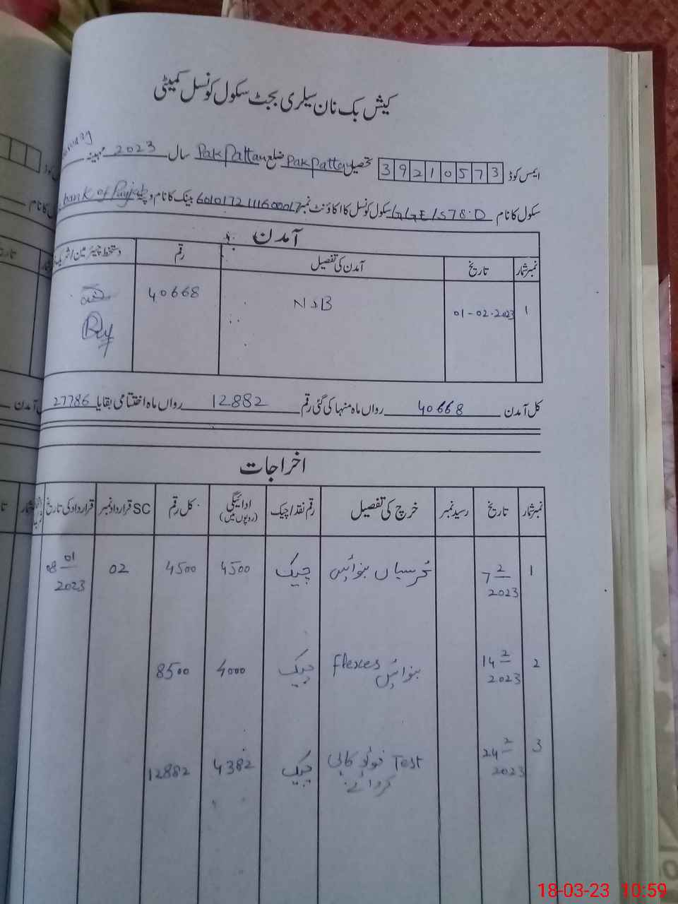 | Name: SA**** SA**** Designation: (School Headmaster's/Headmistress's) SST Phone/Cell Number: 03**** |