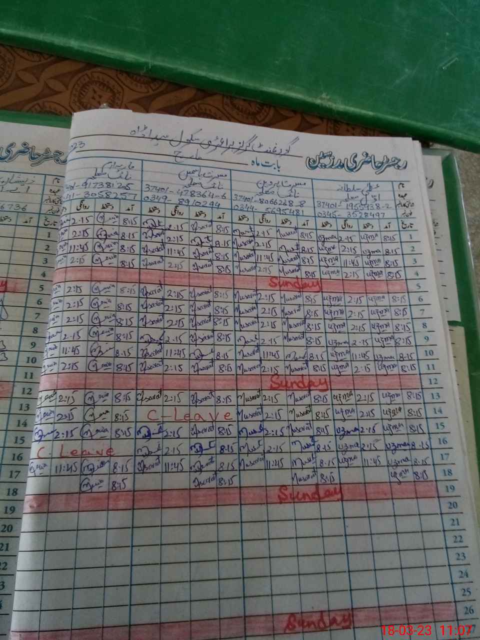 | Name: Ma**** Ir**** Designation: (School Headmaster's/Headmistress's) PTC/JV Phone/Cell Number: 03**** |