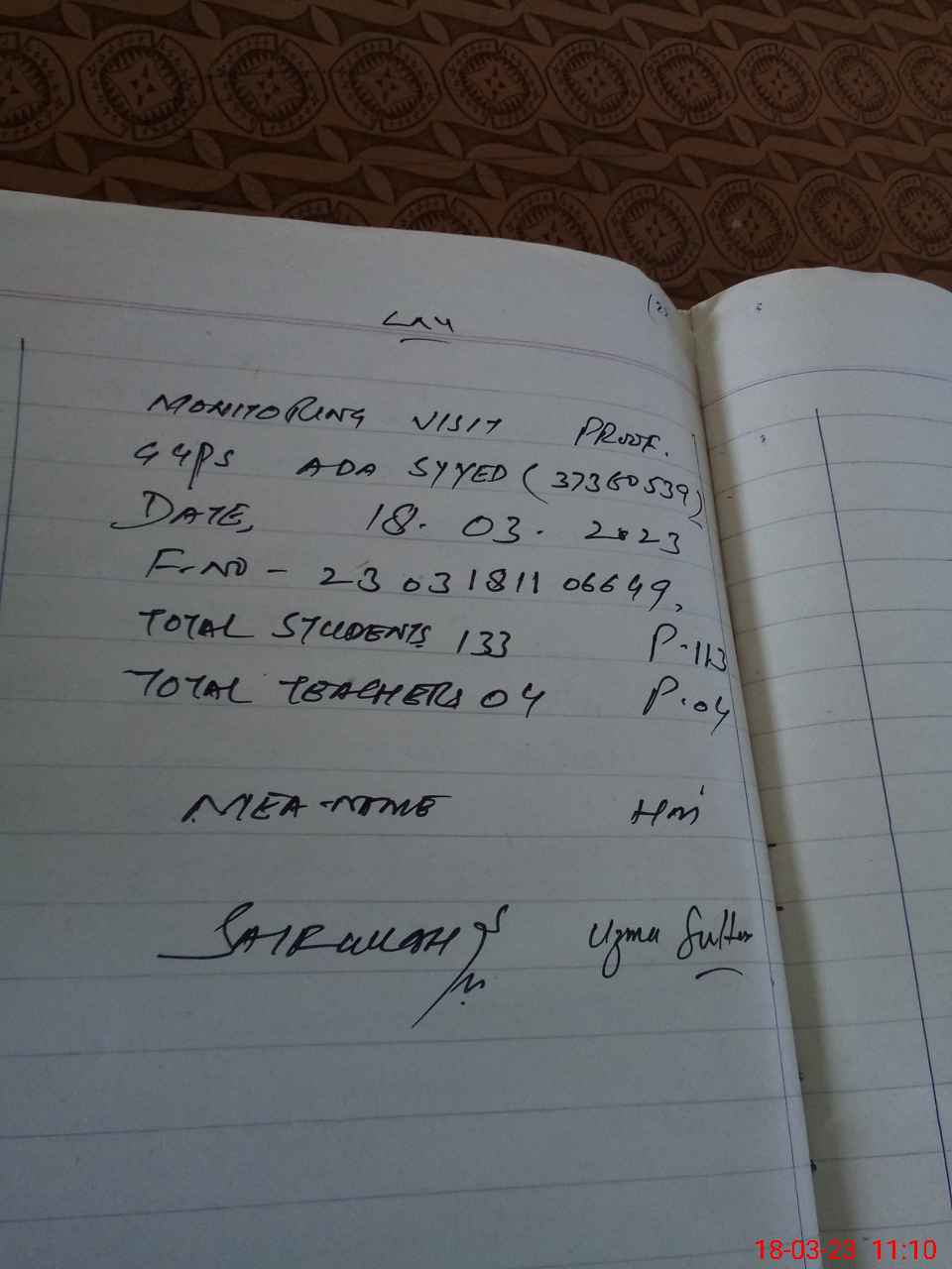 | EMIS Code: 37360539 | Name of School: GGPS ADA SAYYED | |||