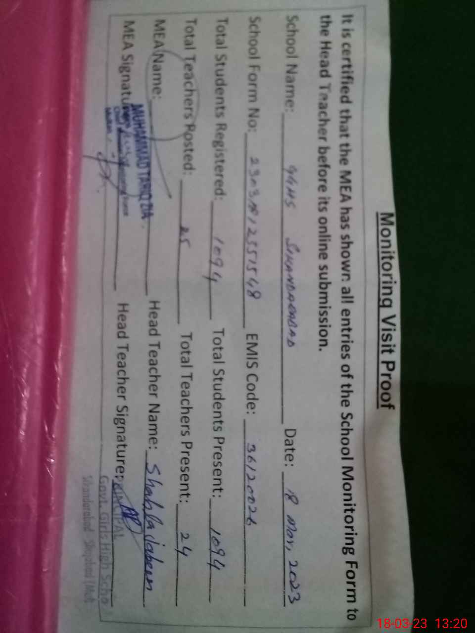 | EMIS Code: 36120026 | Name of School: GGHSS SIKANDAR ABAD SHUJABAD | |||