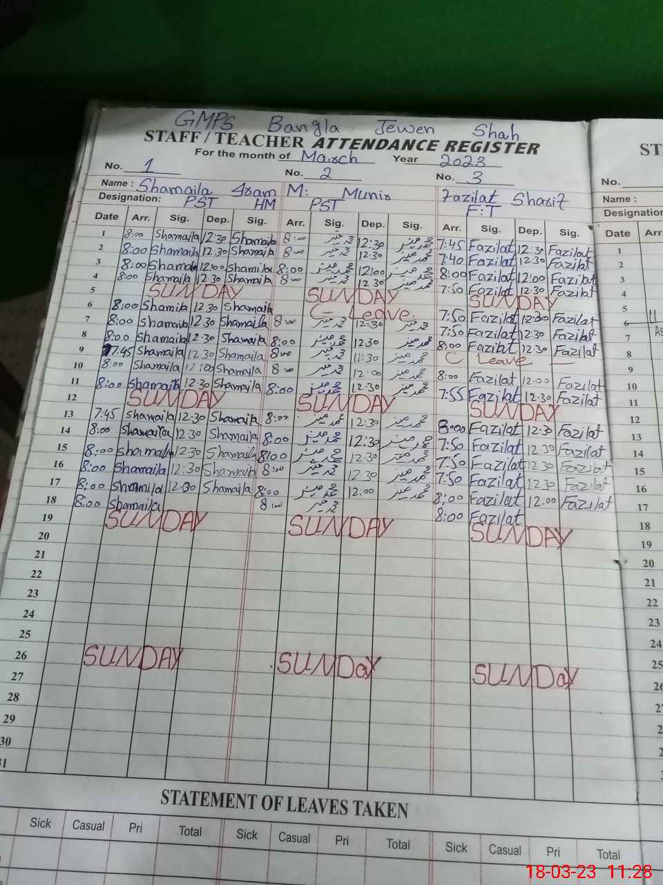 | Name: SH**** IR**** Designation: (School Headmaster's/Headmistress's) PST Phone/Cell Number: 03**** |