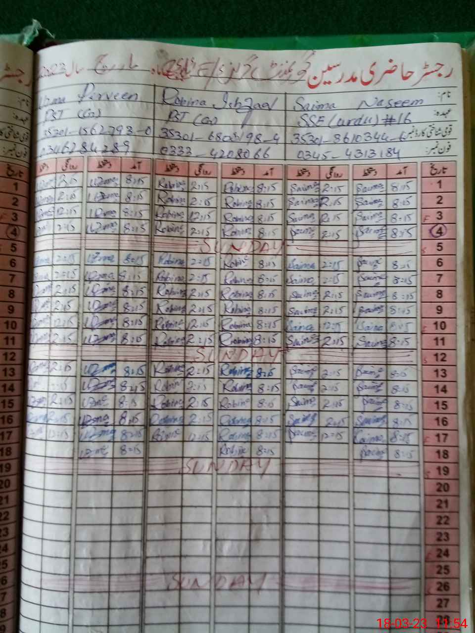 | CNIC | Full Name | Designation | R/C | Absence During Last Calender Month |