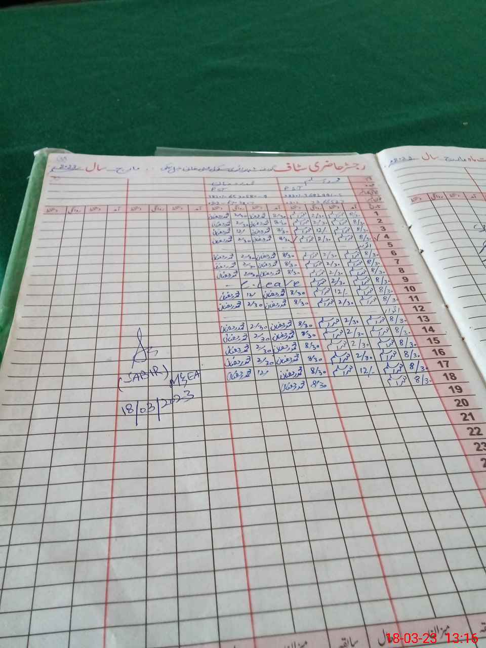 | CNIC | Full Name | Designation | R/C | Absence During Last Calender Month |