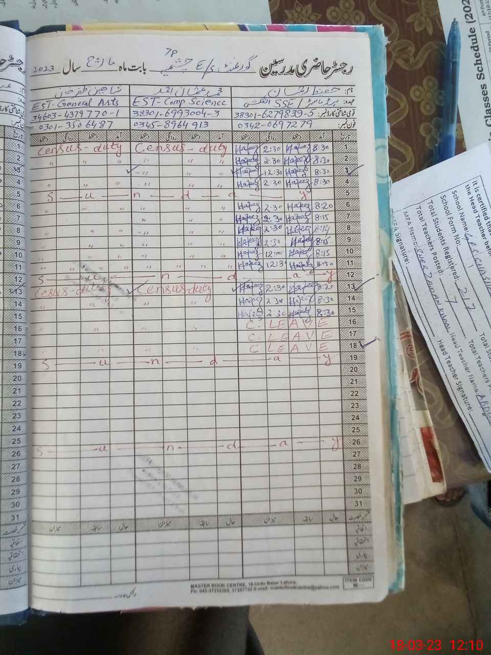 | Name: HA**** URRE**** Designation: (School Headmaster's/Headmistress's) SSE ( ENGLISH ) Phone/Cell Number: 03**** |