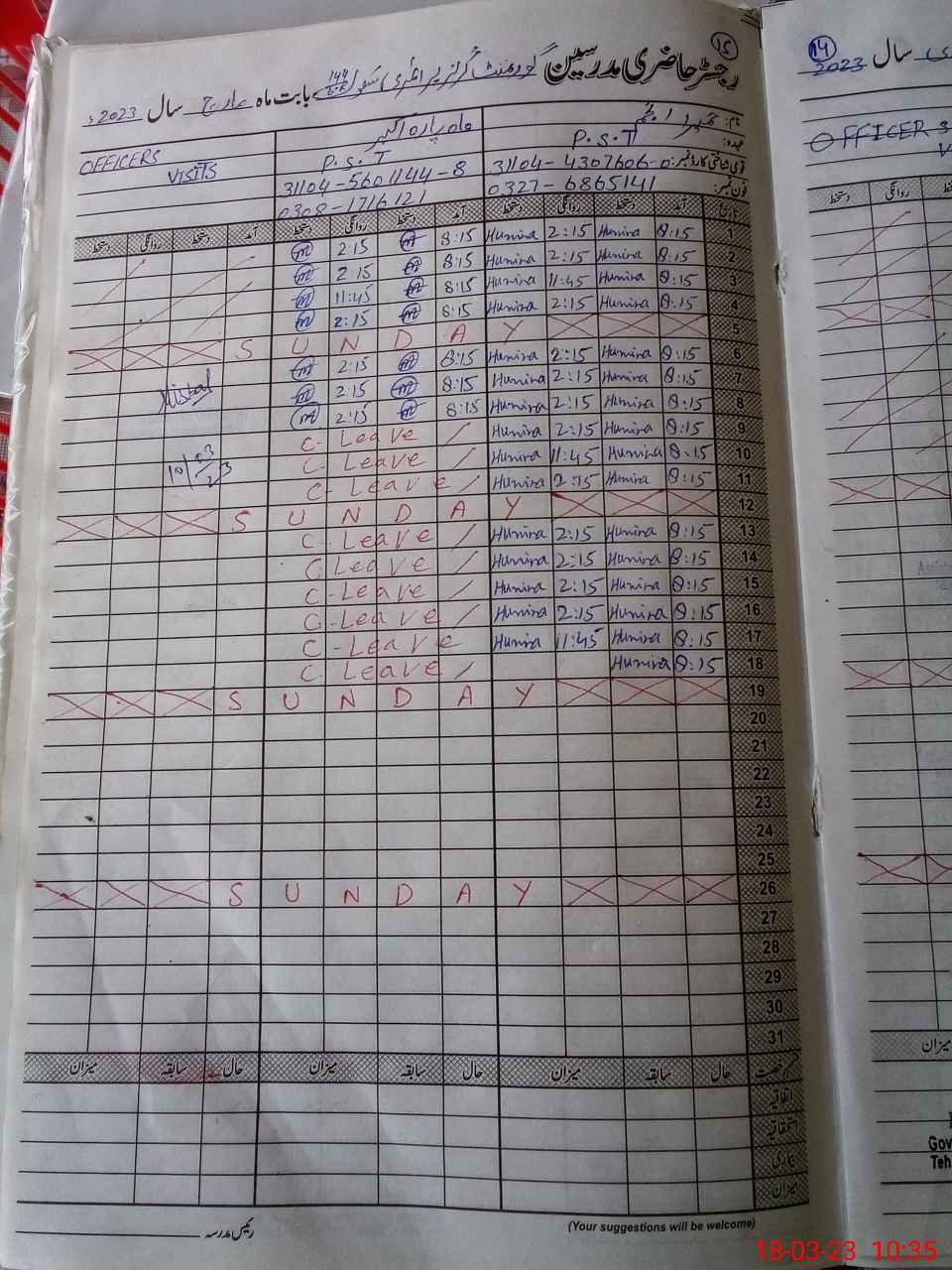 | Name: HU**** AN**** Designation: (School Headmaster's/Headmistress's) PTC Phone/Cell Number: 03**** |