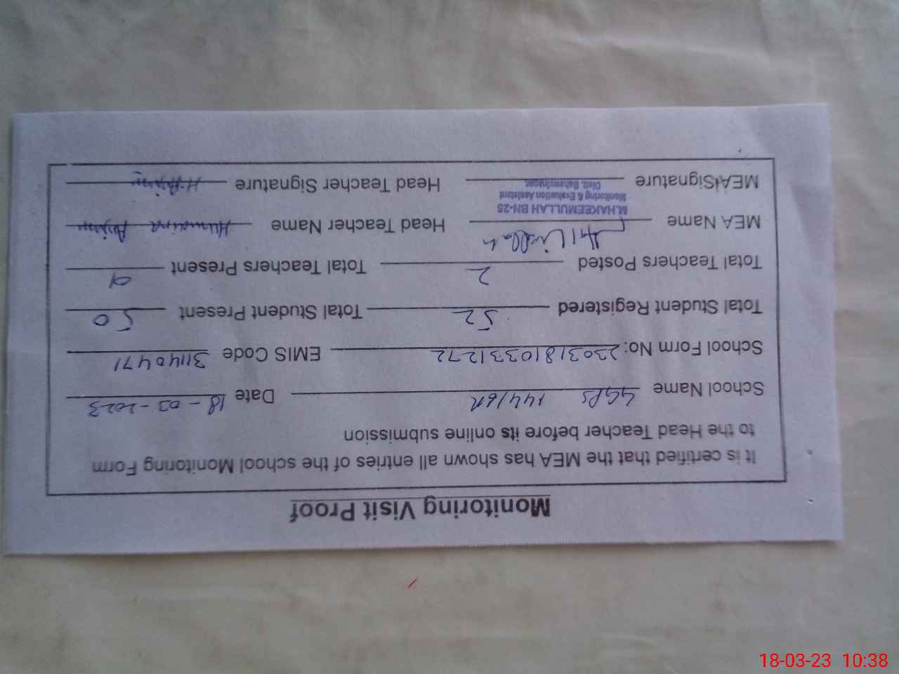 | Monitoring Date: 18-03-2023 | Start Time: 18-03-2023 10:01 AM | End Time: 18-03-2023 10:38 AM | Name of MEA: Mu**** ha**** ul**** BN25 | |