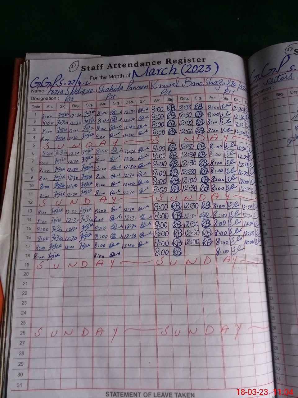 | Sr.No. | Visit Date | Designation | ||