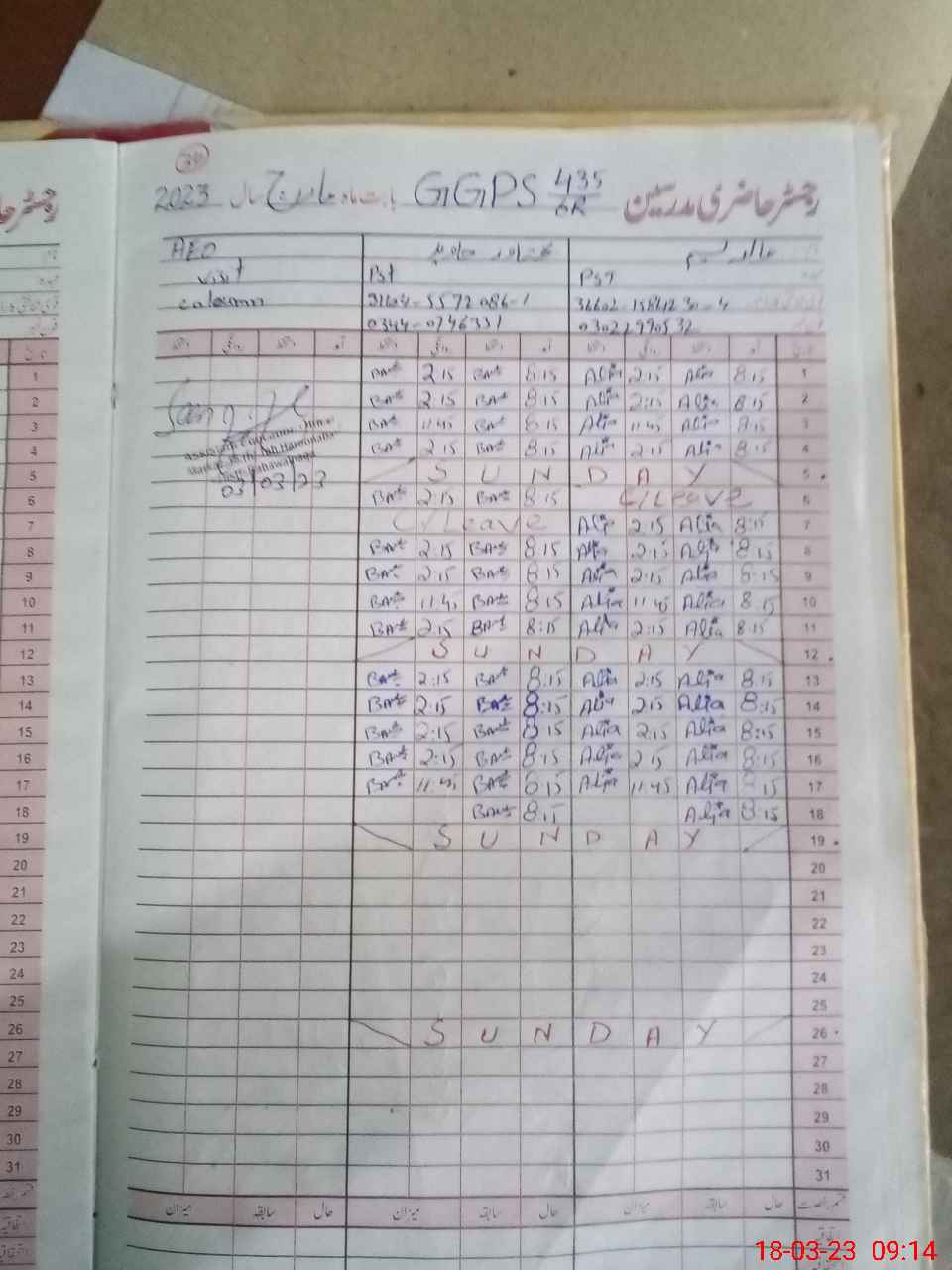 | Name: Al**** Na**** Designation: (School Headmaster's/Headmistress's) ESE Phone/Cell Number: 03**** |