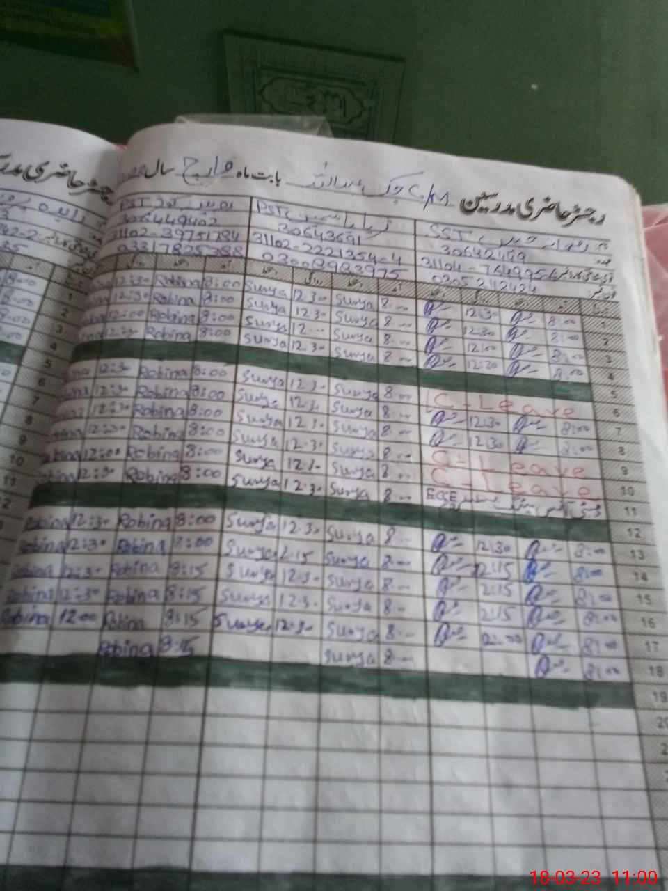 | CNIC | Full Name | Designation | R/C | Absence During Last Calender Month |