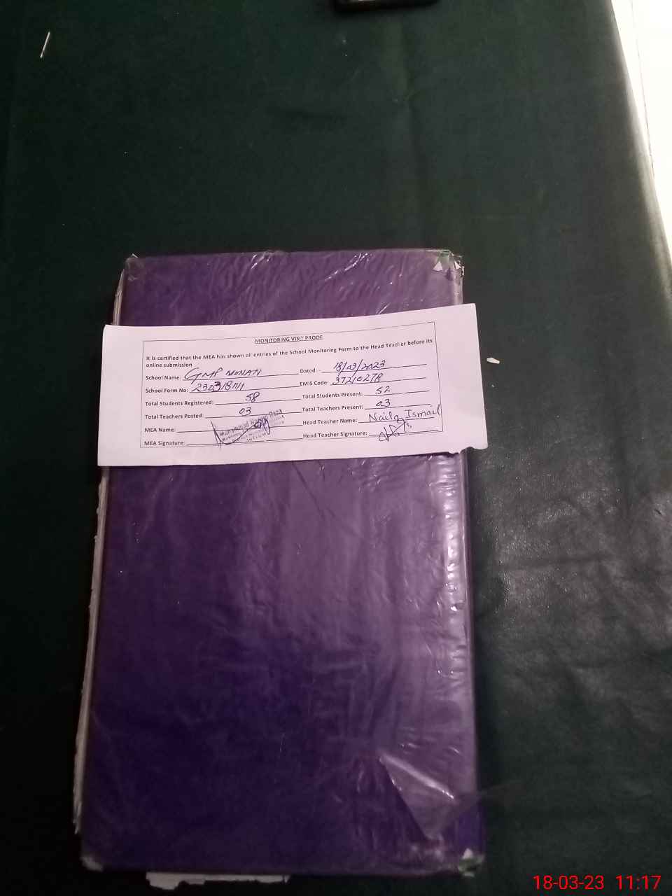| Attendance Register | Head Teacher | MEA with School | Visit Proof |