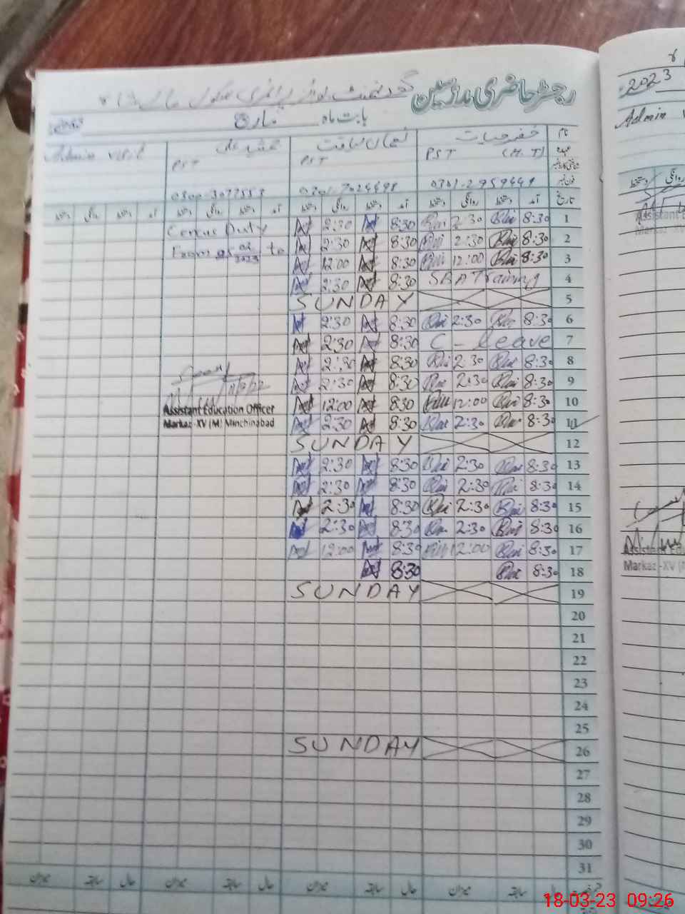 | Name: KH**** HA**** Designation: (School Headmaster's/Headmistress's) PST Phone/Cell Number: 03**** |