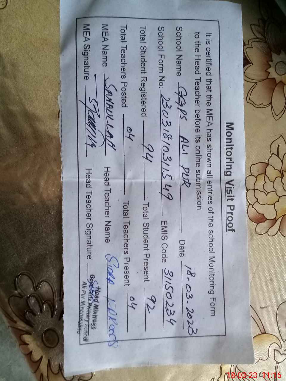| EMIS Code: 31150234 | Name of School: GGPS ALI PUR | |||