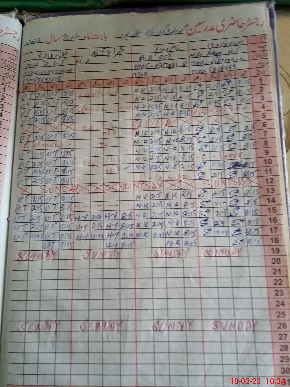 | Name: SI**** FA**** Designation: (School Headmaster's/Headmistress's) PST Phone/Cell Number: 03**** |