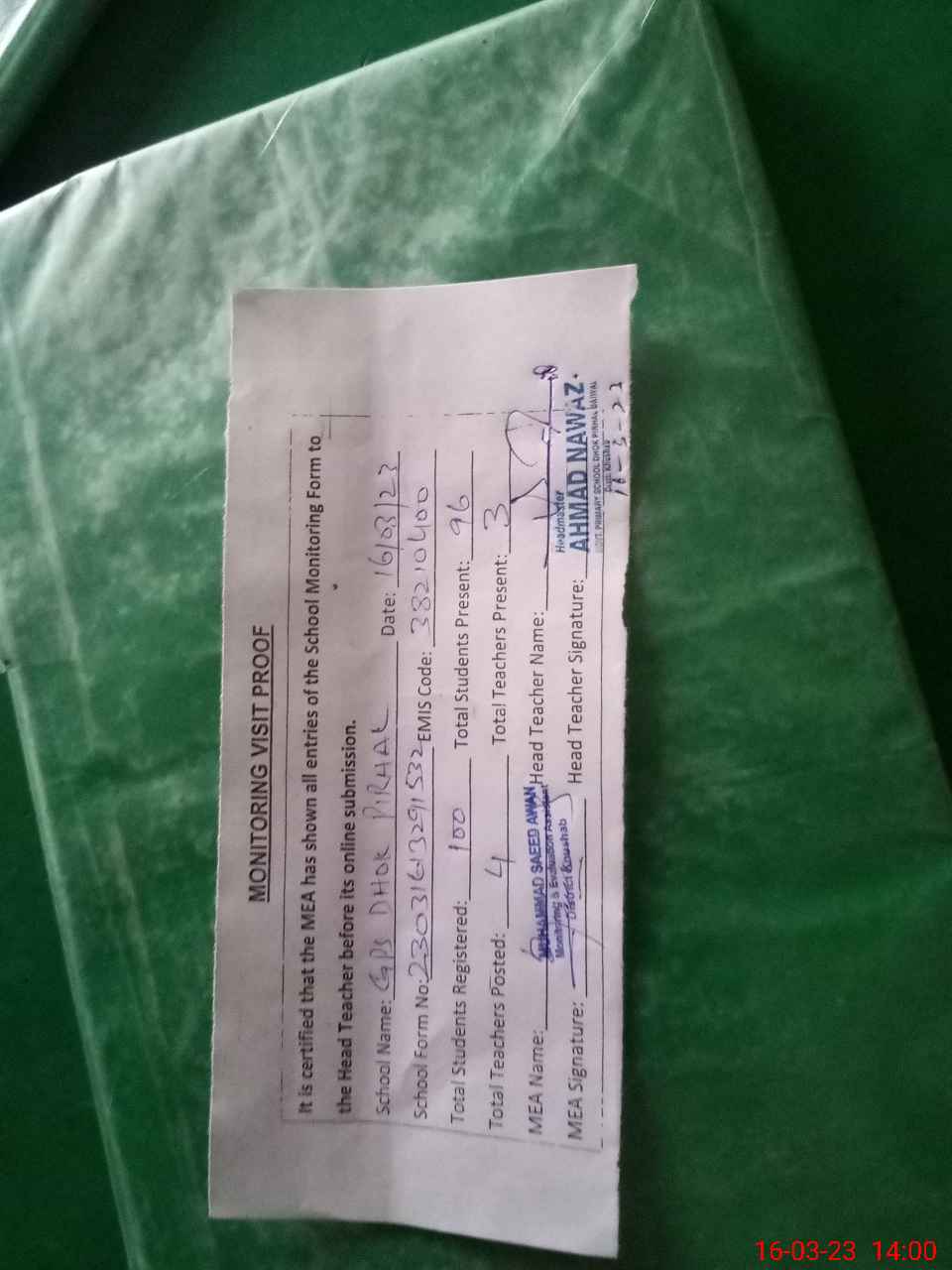 | EMIS Code: 38210400 | Name of School: GPS DHOK PIRHAL | |||