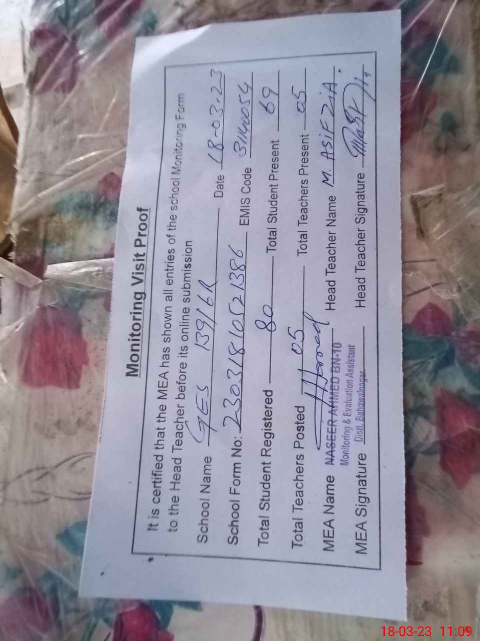 | EMIS Code: 31140054 | Name of School: GES CHAK NO. 139/6-R | |||