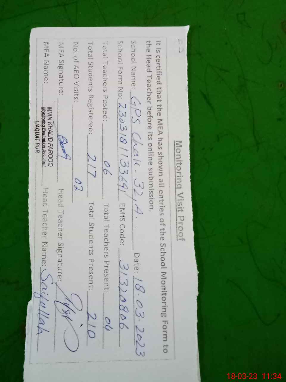 | EMIS Code: 31320806 | Name of School: GPS CHAK 32/A | |||