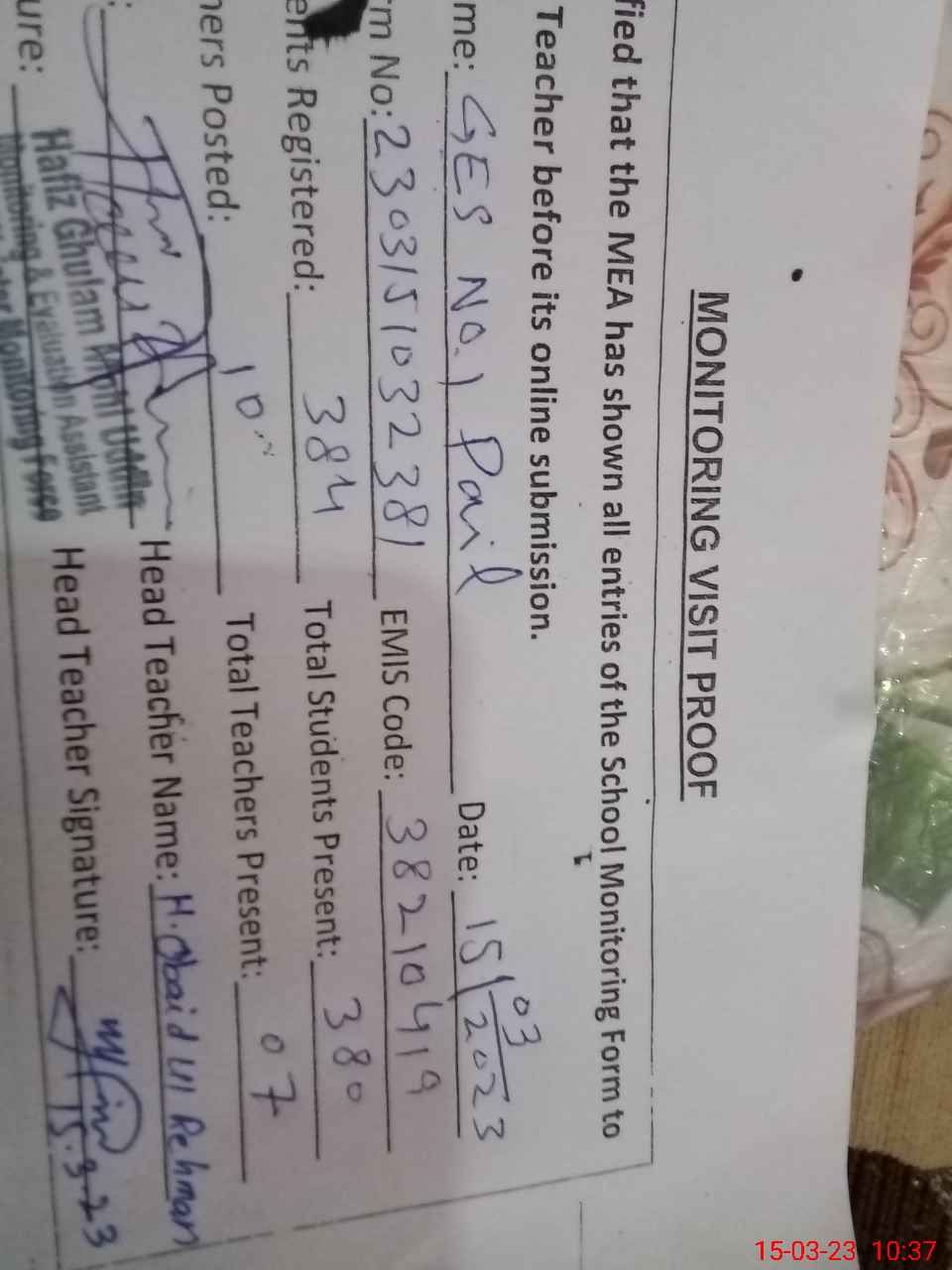 | Name: Ma**** As**** Hu**** Aw**** Designation: (School Headmaster's/Headmistress's) Pst Phone/Cell Number: 03**** |