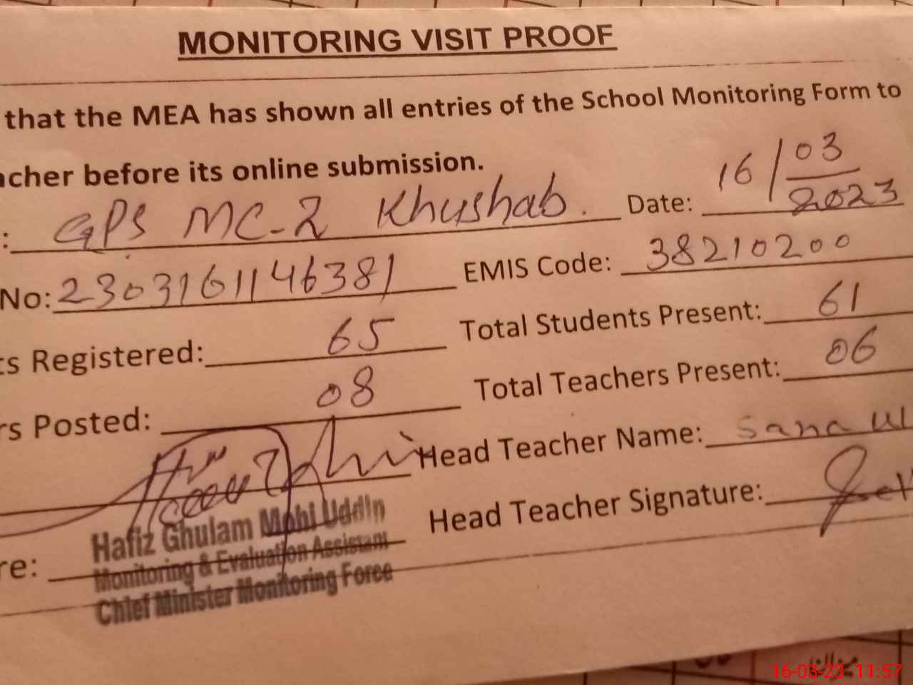 | EMIS Code: 38210200 | Name of School: GPS MC NO. 5 KHUSHAB | |||