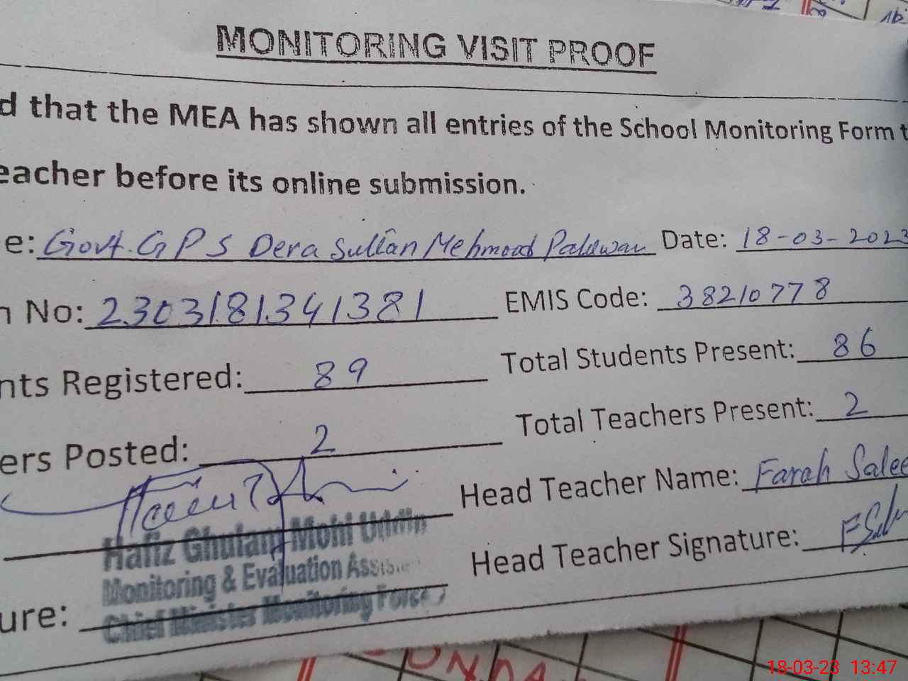 | EMIS Code: 38210778 | Name of School: GGPS HAJI SULTAN MEHMOOD PALUWAN | |||