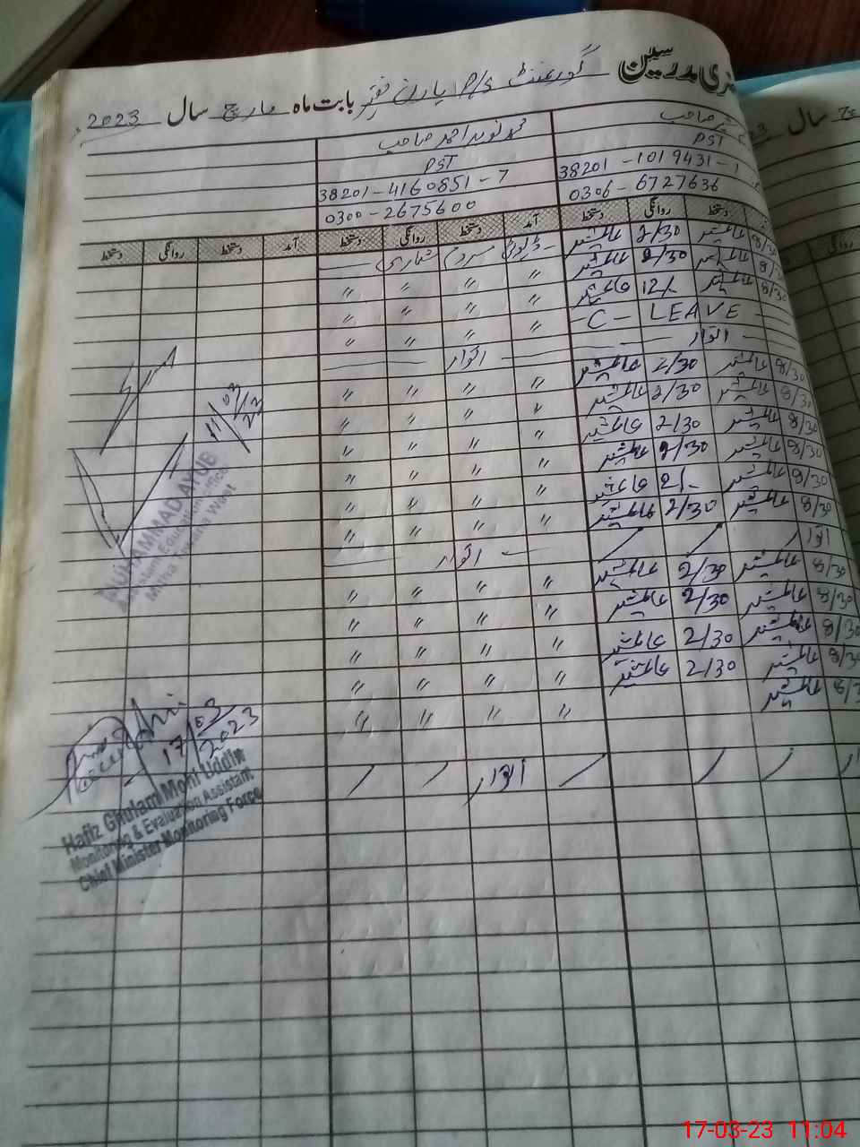 | Name: Mu**** Ha**** Designation: (School Headmaster's/Headmistress's) PST/PTC/JV Phone/Cell Number: 03**** |