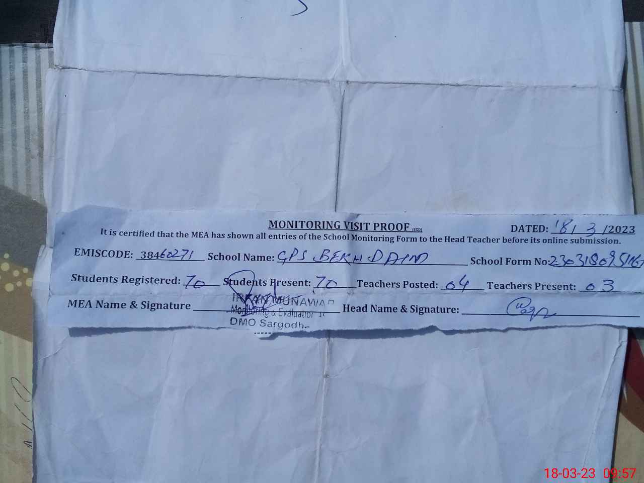 | Certified that this School was Inspected by the Undersigned MEA/DMO Today and the Information Stated Above is as Per Record. | |||||