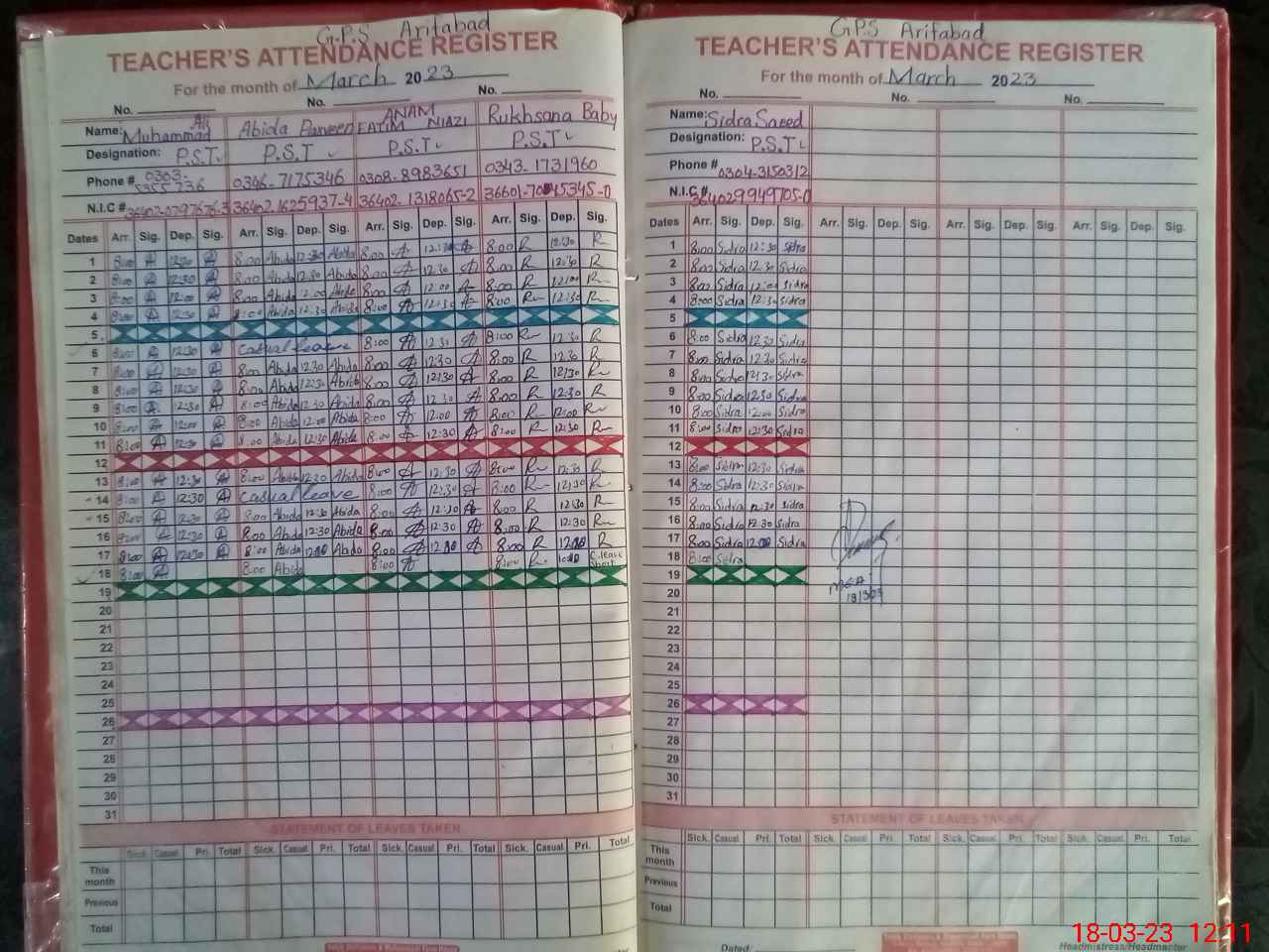 | Name: Ab**** Pa**** Designation: (School Headmaster's/Headmistress's) PST Phone/Cell Number: 03**** |