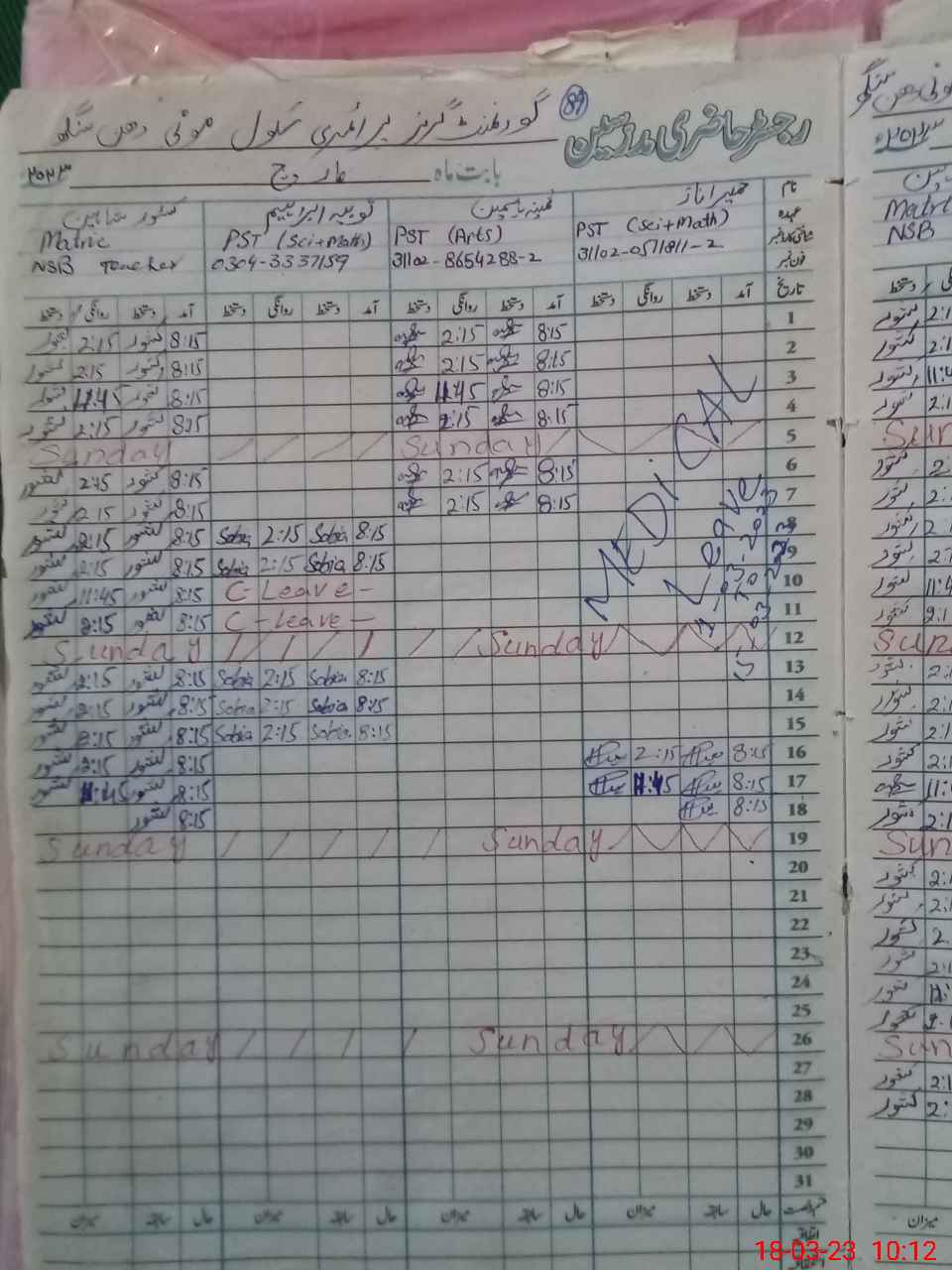| Leave | Duty | Absent | Maternity | Medical | Ex- Pak |