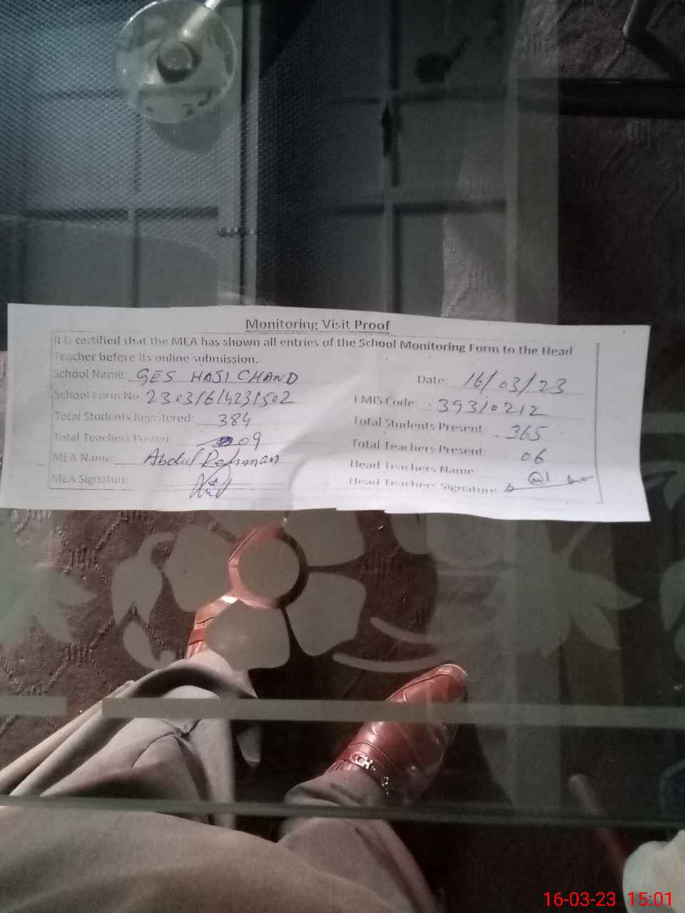 | Attendance Register | Head Teacher | MEA with School | Visit Proof |