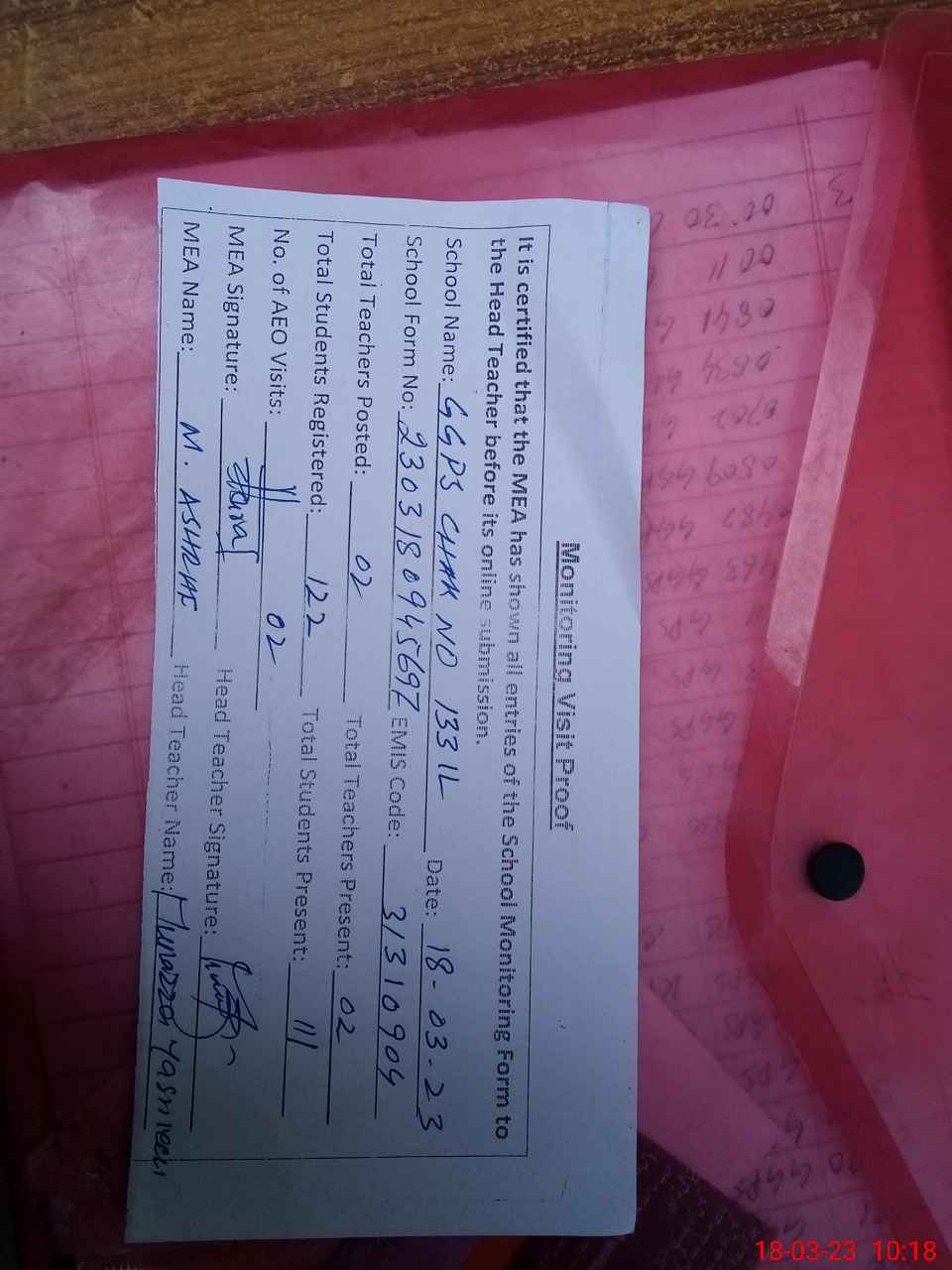 | EMIS Code: 31310904 | Name of School: GGPS CHAK NO.133/L | |||