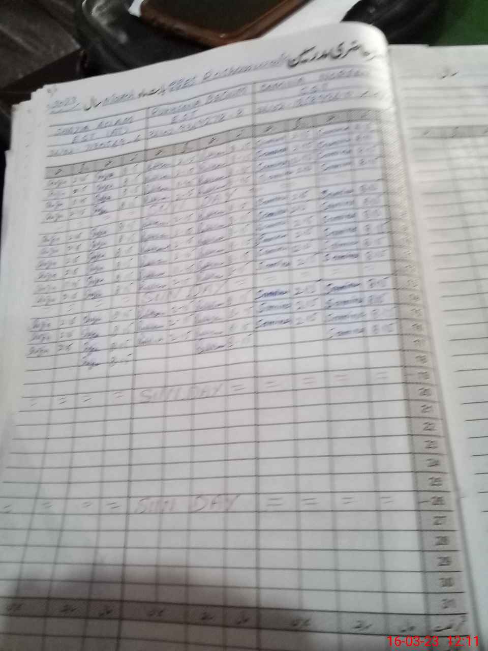 | CNIC | Full Name | Designation | R/C | Absence During Last Calender Month |