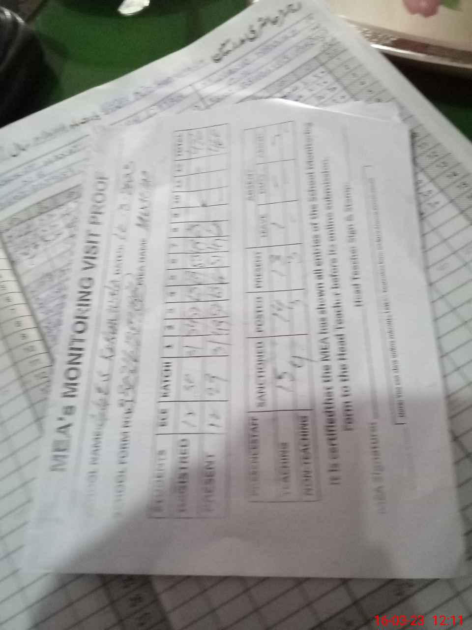 | Attendance Register | Head Teacher | MEA with School | Visit Proof |