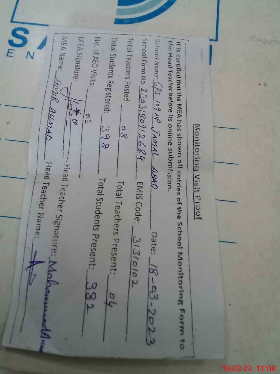 | EMIS Code: 31310102 | Name of School: GPS CHAK 109/NP JAMAL ABAD | |||