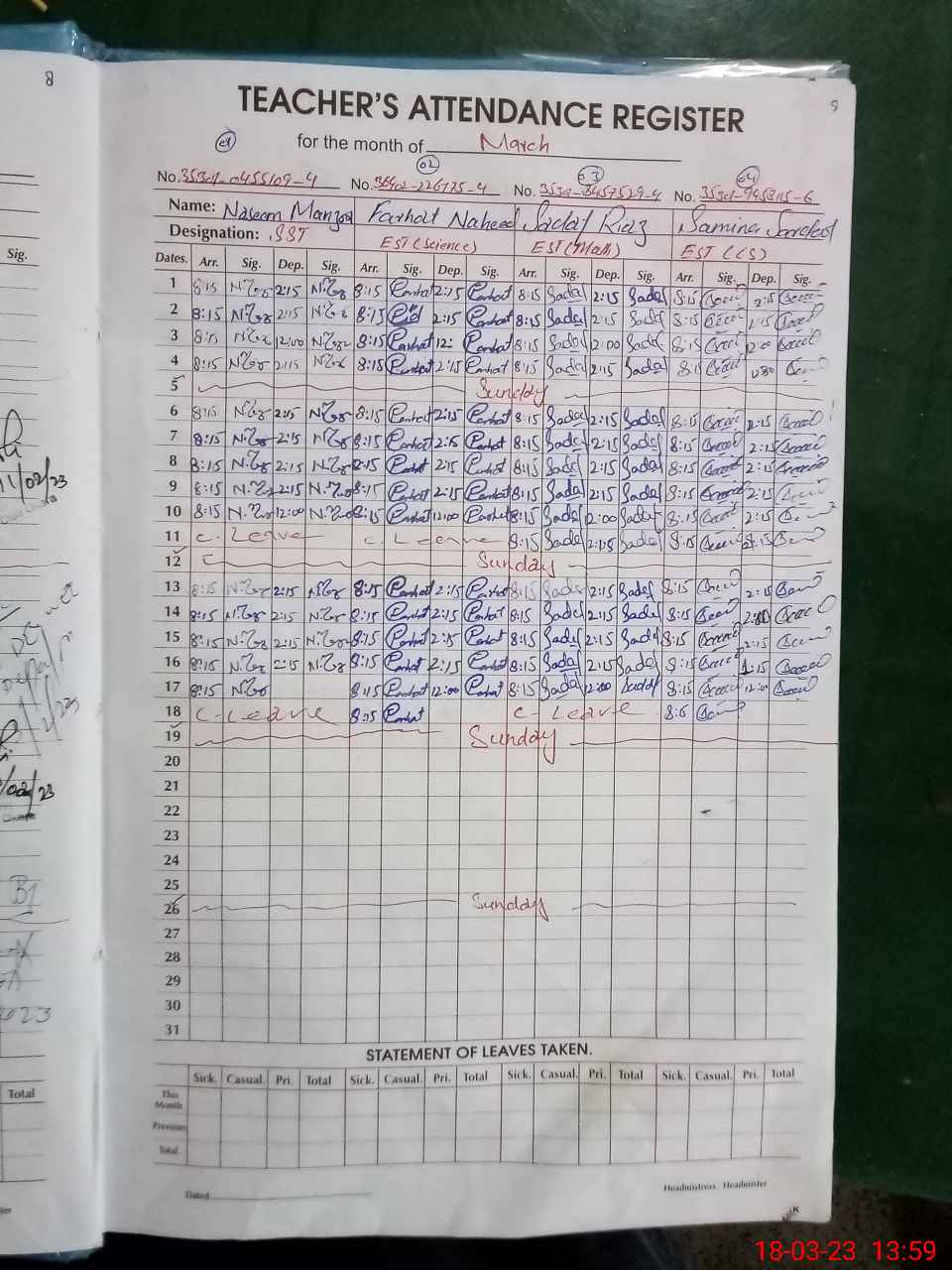 | Name: Fa**** Ta**** Designation: (School Headmaster's/Headmistress's) Head Mistress Phone/Cell Number: 03**** |