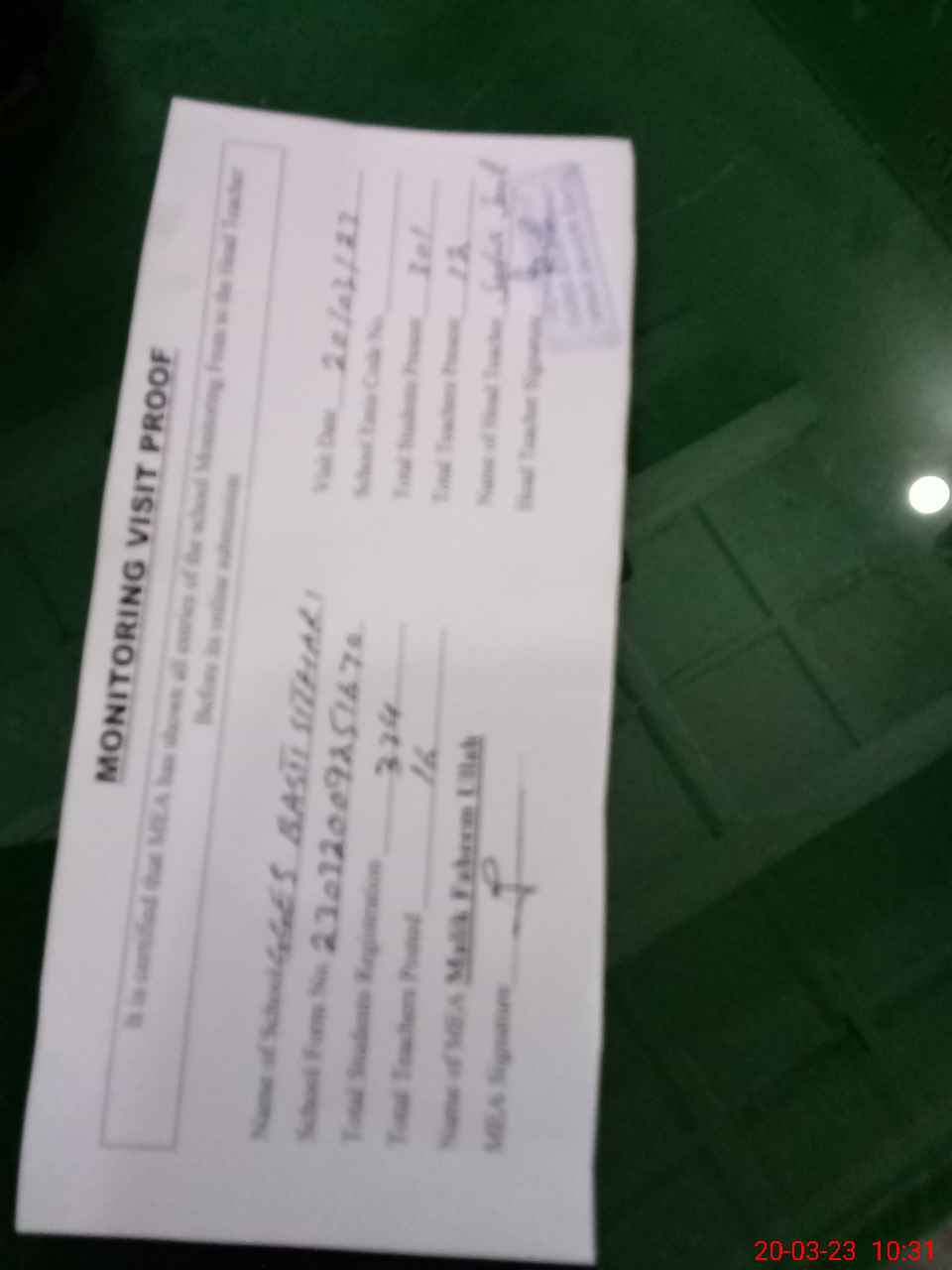 | Attendance Register | Head Teacher | MEA with School | Visit Proof |