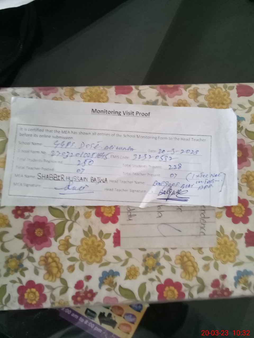 | EMIS Code: 32320532 | Name of School: GGPS DOST ALI WALA | |||