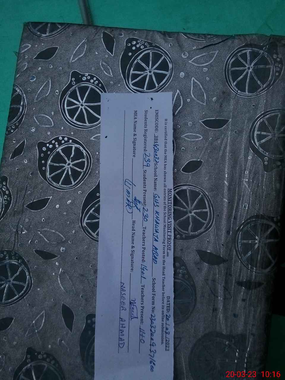 | EMIS Code: 38430032 | Name of School: GHS KHAWAJA ABAD | |||