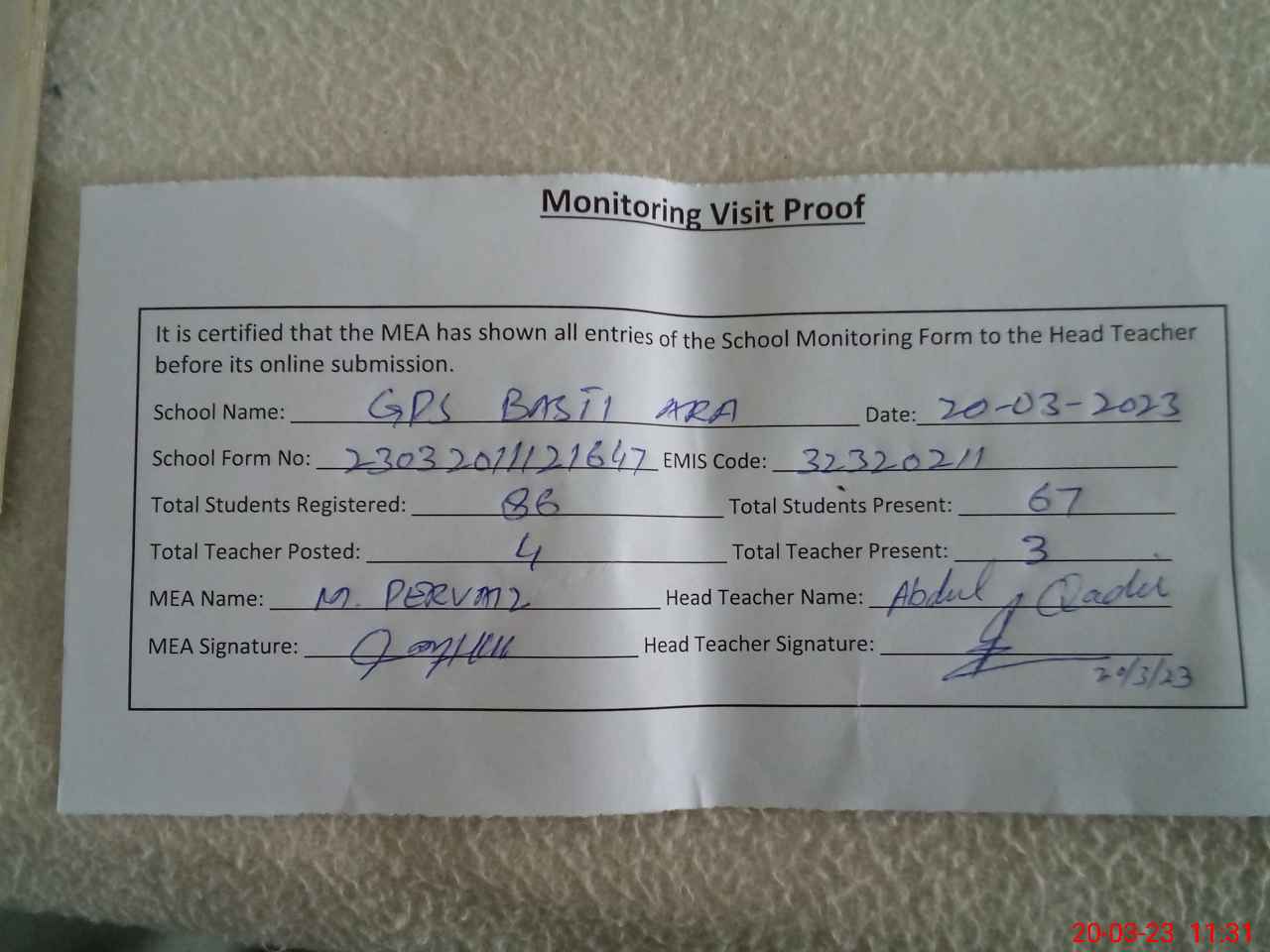 | EMIS Code: 32320211 | Name of School: GPS BASTI ARA | |||