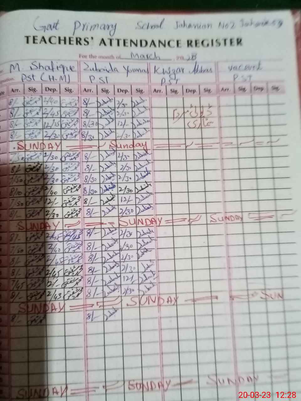 | Name: Mu**** Sh**** Designation: (School Headmaster's/Headmistress's) PST Phone/Cell Number: 03**** |