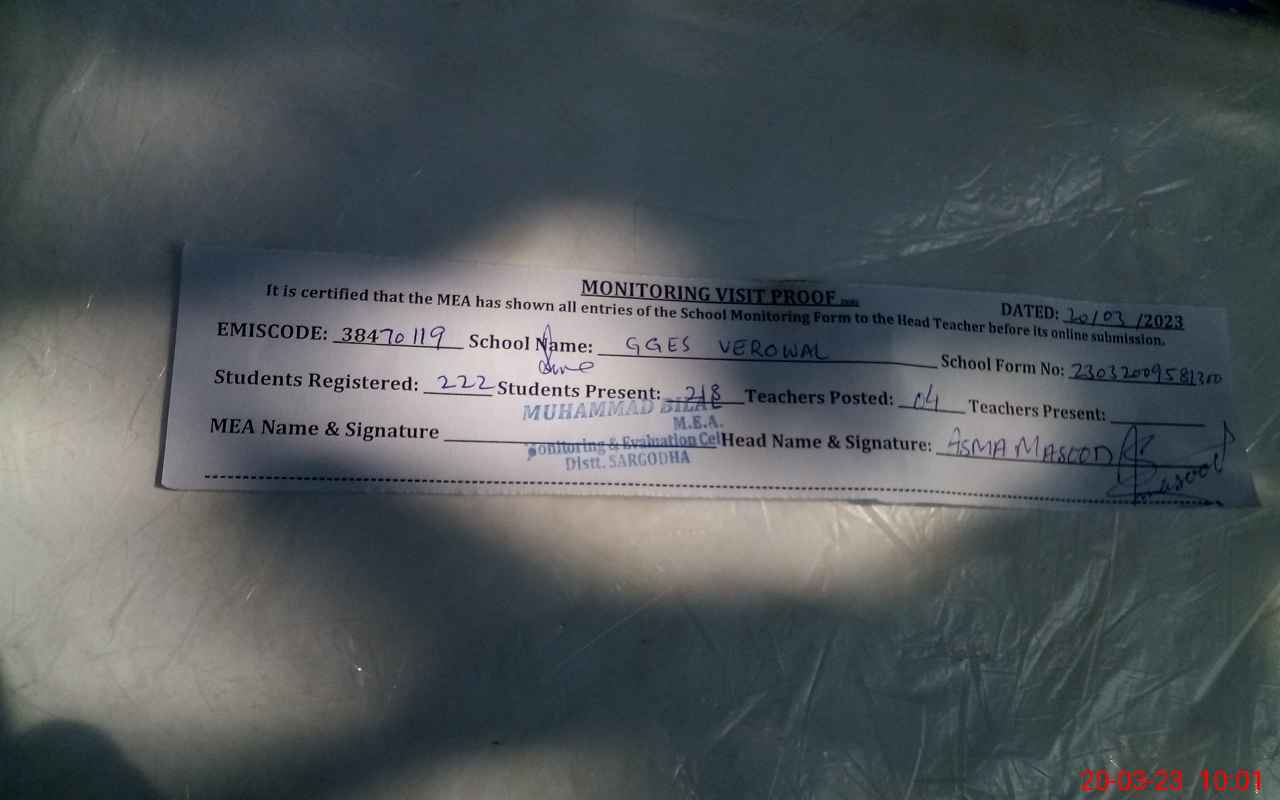 | EMIS Code: 38470119 | Name of School: GGES VEROWAL | |||