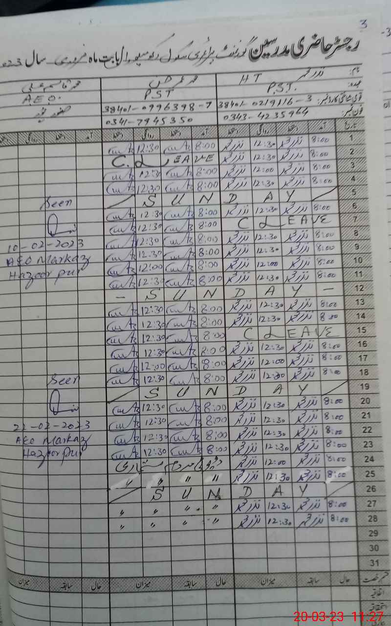 | Name: Mu**** Um**** Ha**** Designation: (School Headmaster's/Headmistress's) PST Phone/Cell Number: 03**** |