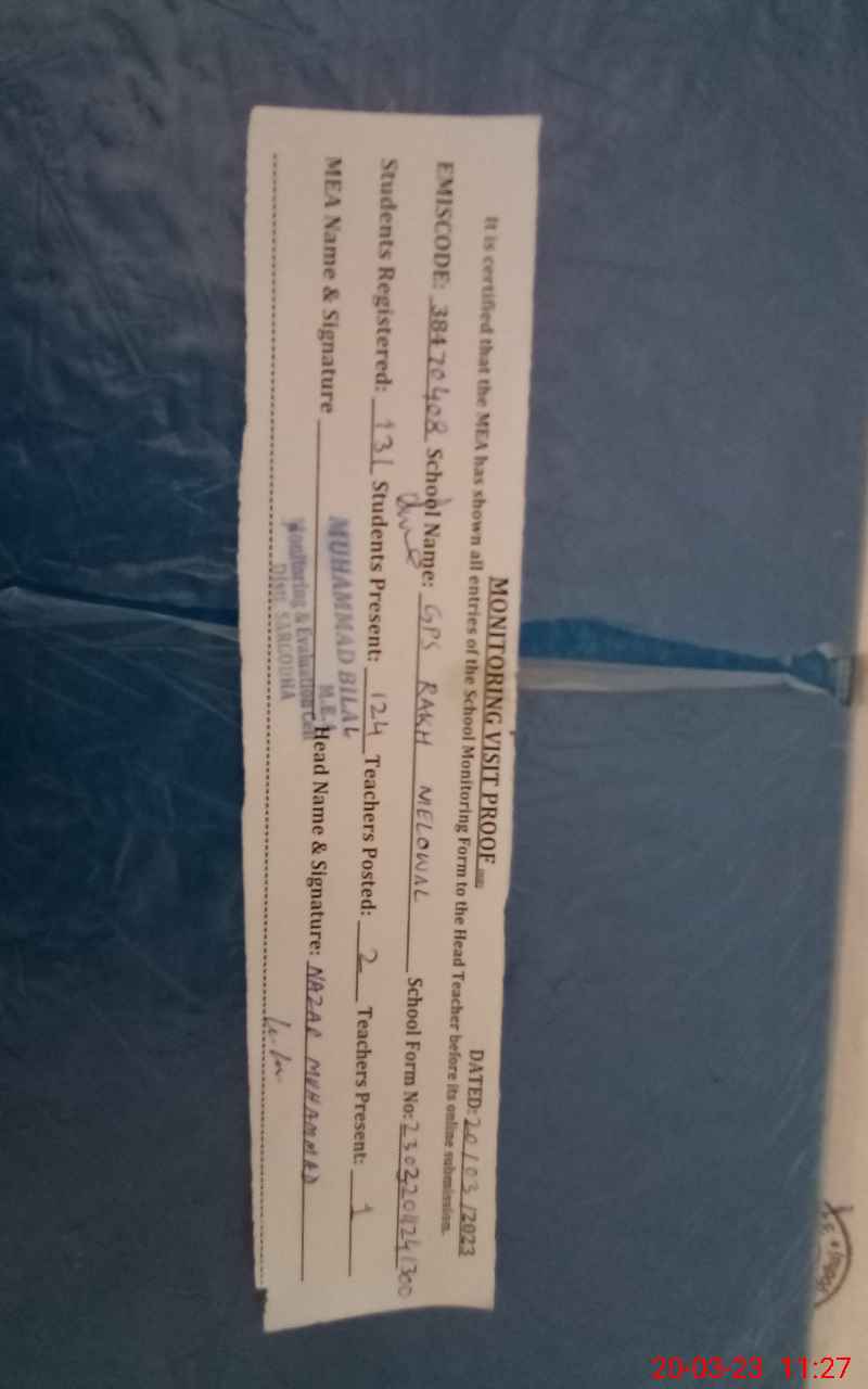 | EMIS Code: 38470408 | Name of School: GPS RAKH MELO WAL | |||